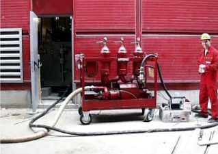 the machine/system tank from a tanker or other containers via a filtration unit.. Machine/system flushing in the main circuit until the required cleanliness